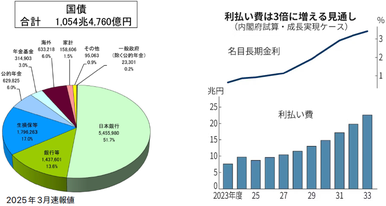 2025年度の予算を見ると、国債発行による資金調達が歳入の4分の1を占める。同様に、歳出も国債費が4分の1を占め、日本の財政は予算の4分の3しか自由度がない。これから、国債残高がさらに増えて金利が上昇すると、予算編成の自由度がますます下がり、必要な政策を充分に実行できなくなる。